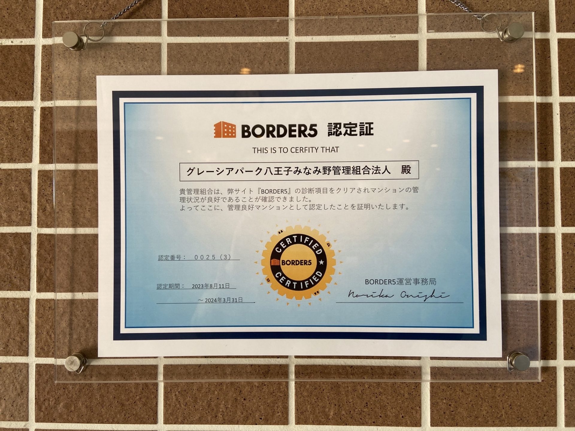 また大きなポイントですが、現在当社のBORDER5以外のマンション管理を認定する制度は、登録するためにはコストが発生します。そのためグレーシアパーク八王子みなみ野では、現在は無料で登録可能なBORDER5のみで評価制度は充分ということでした。さらにありがたいことに、まずマンションの管理状態を診断するなら「BORDER5でまずチャレンジしてからでもいいのではないか!」という言葉もいただきました。