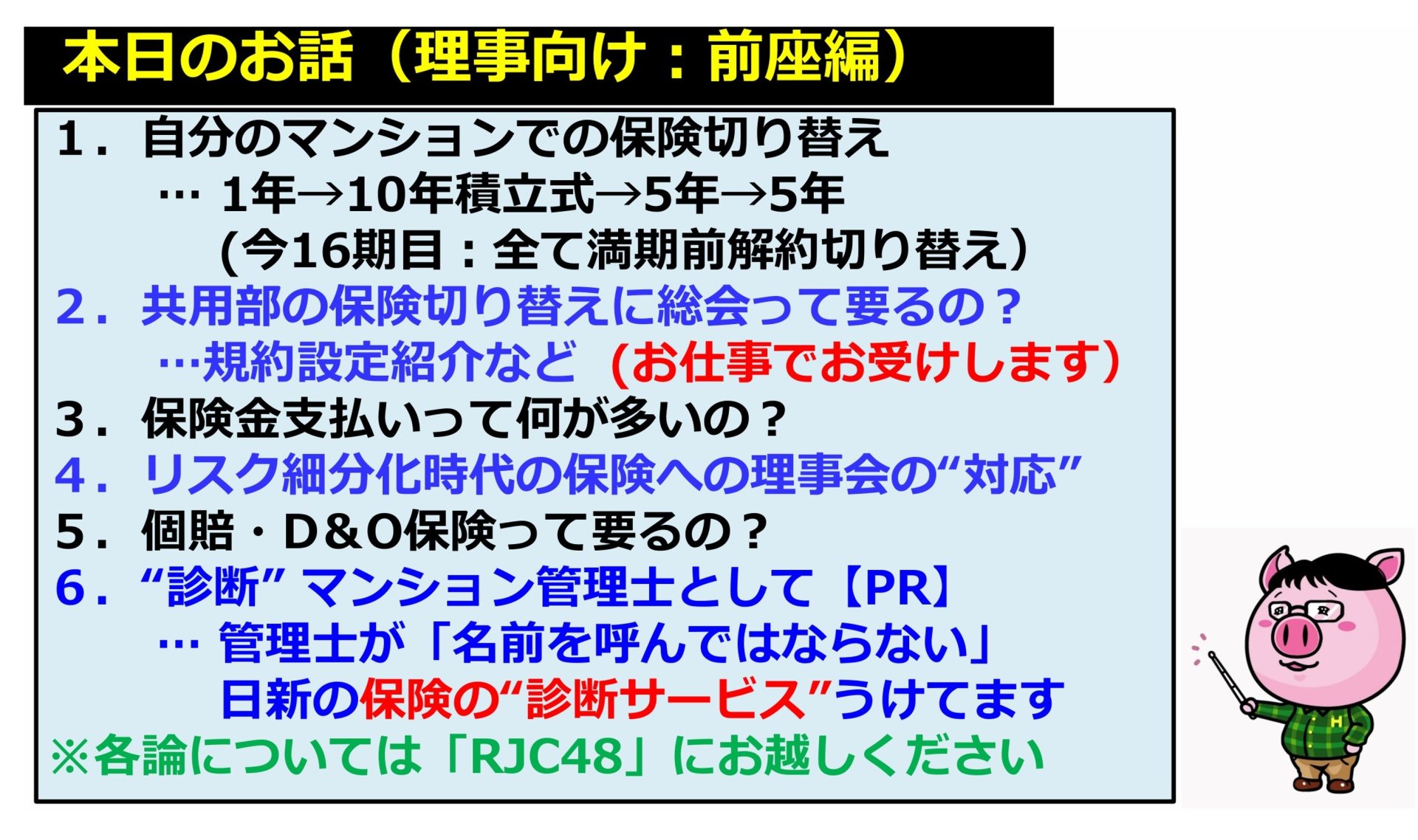 管理組合目線で、保険設定について説明してくれる方は少ないのですが、今回そのような講演者をお呼びしていて、その講演が楽しみです。